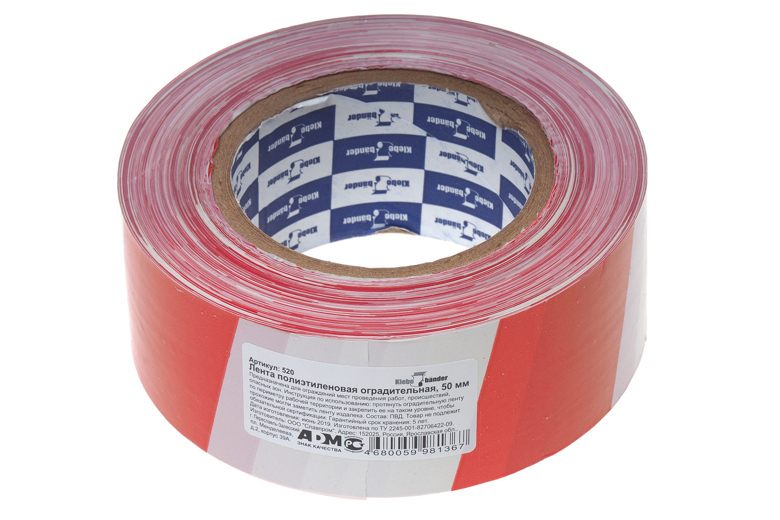Лента сигнальная 50ммх200м для ограждений бело-красная Klebebander