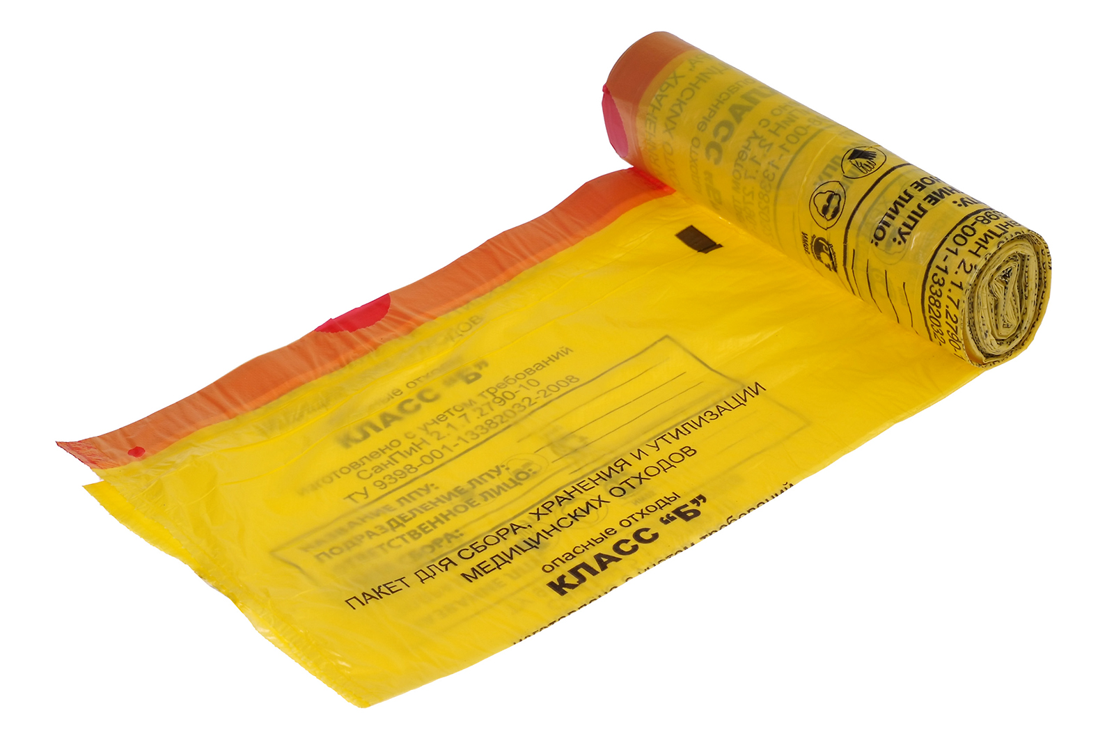 Пакеты для медицинских отходов 30х60см со стяжками Класс Б 30шт/рул., цена за рул.