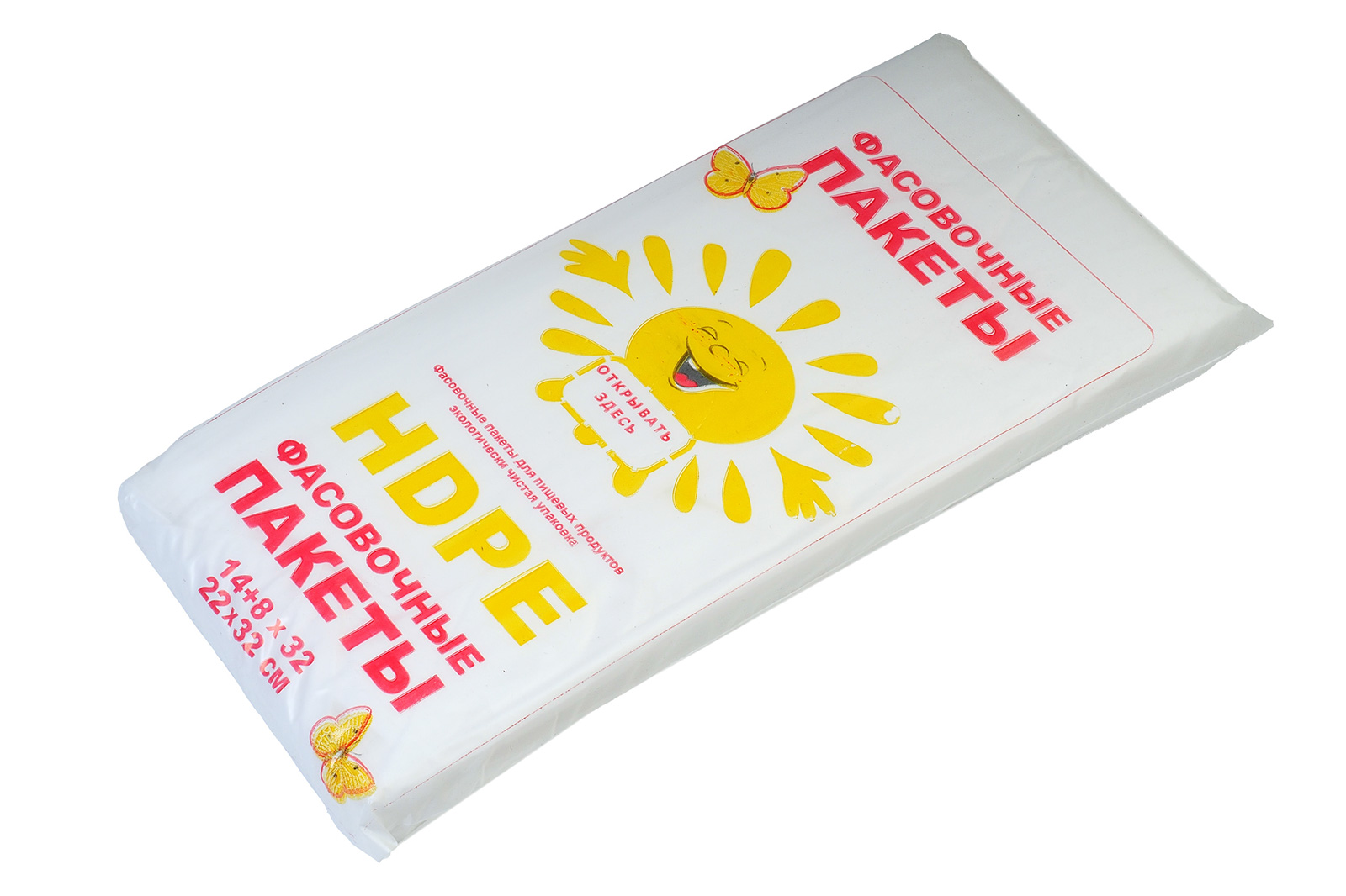 Пакет фасовочный ПНД евро Солнышко 22х32см 14+8х32 7.3мкм вес пачки 0.94 вес пакета 0.15 550шт/уп цена за уп
