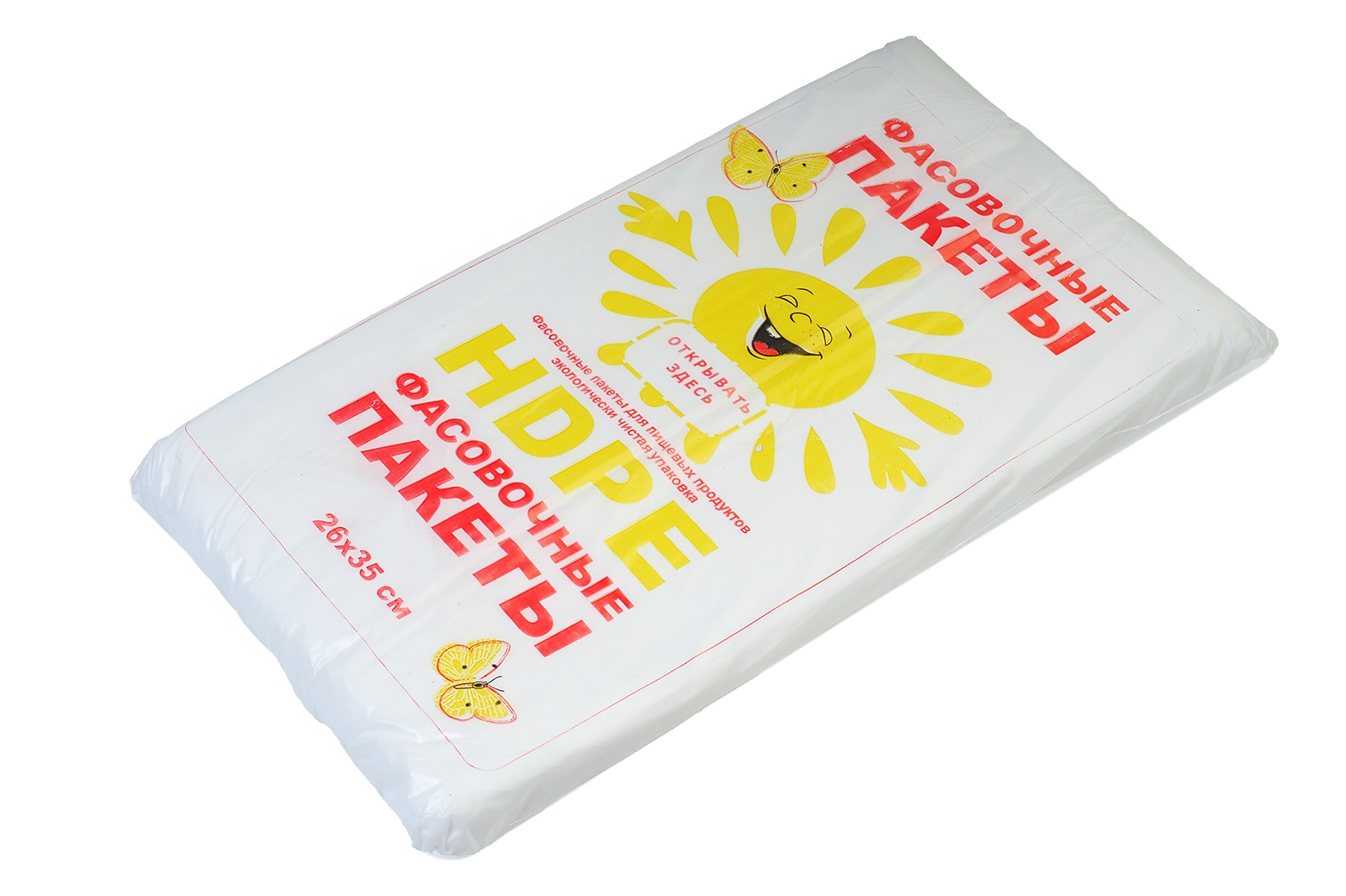 Пакет фасовочный ПНД евро Солнышко 26х35см 18+8х35 реальный размер 17.5+7.5+34.5 7.3мкм вес пачки 685г вес пакета 1.25г 550шт/уп цена за уп