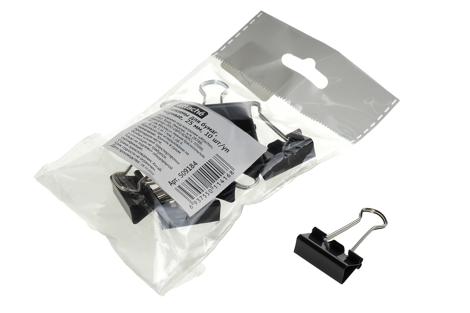 Зажим для бумаг металлический 25мм черный 10шт/уп Attache цена за 1шт