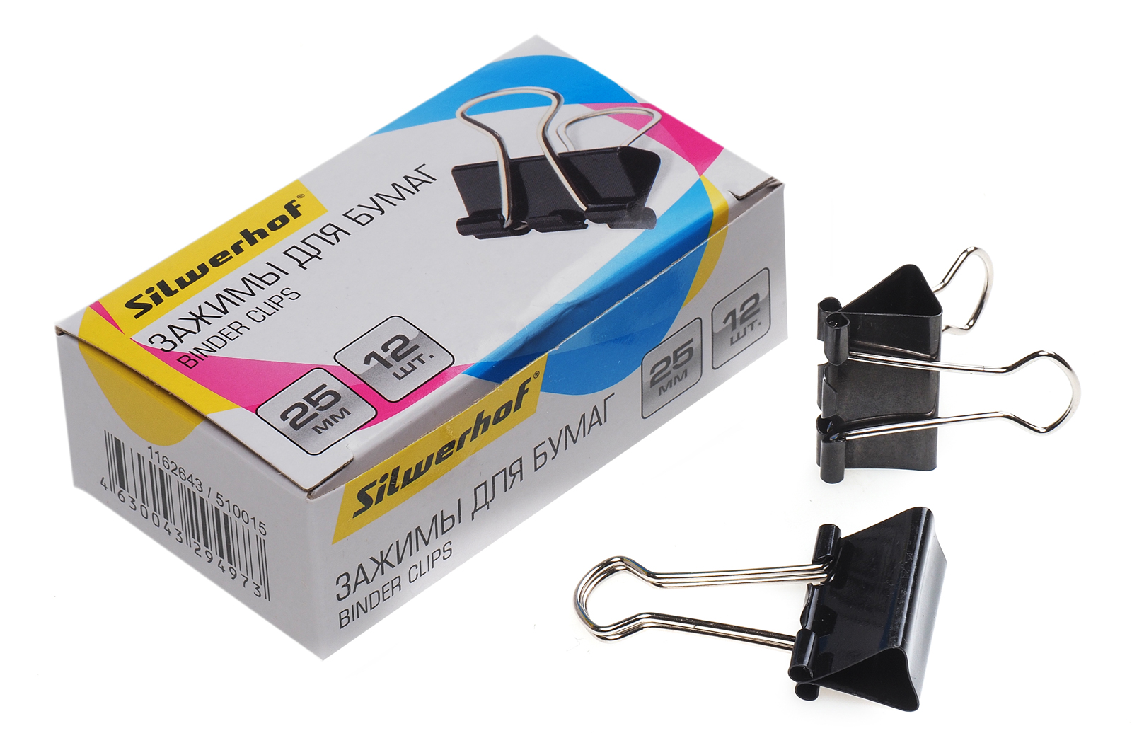 Зажим для бумаг металлический 25мм черный 12шт/уп Silwerhof цена за шт