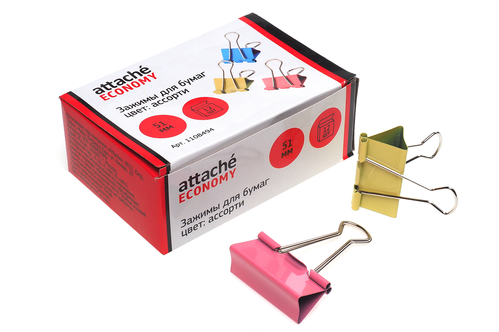 Зажим для бумаг металлический 51мм цветной 12шт/уп Attache Economy цена за 1шт
